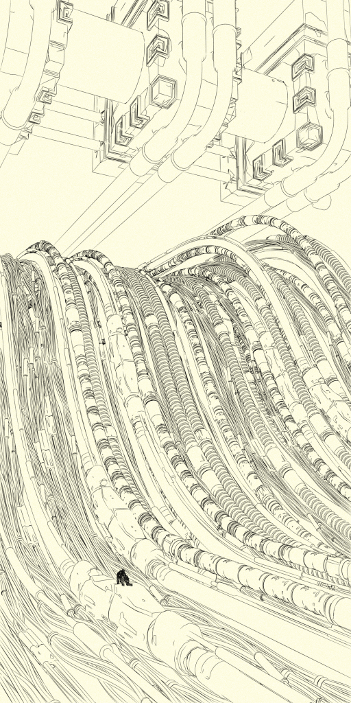 We pressed on, driven by a mixture of curiosity and fear, drawn deeper into the Machine’s labyrinthine depths. The hum grew louder, the air thicker, the sense of unreality more profound. We were lost in the heart of the Machine, adrift in a sea of alien symbols and pulsating veins, forever circling the elusive core, forever trapped in its mesmerizing rhythm.